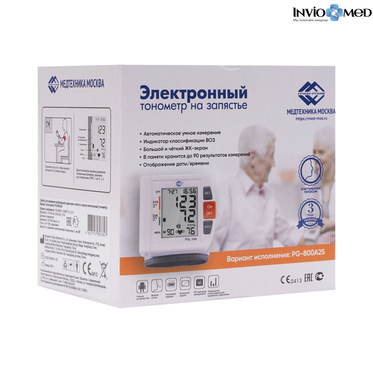 - Тонометр на запястье автоматический (с голосовым выходом) Med-Mos PG-800A25