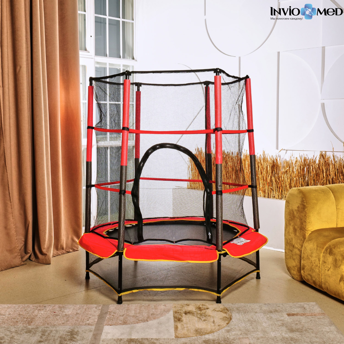 - Батут DFC TRAMPOLINE-RED 55 дюймов с сеткой